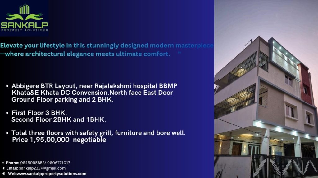 1) Ground Floor Parking and 2BHK E-Katha DC Conversion North Face East Door 2) First Floor 3BHK 3) Second 2BHK and 1BHK 4) E-Katha DC Conversion North Facing East Door 5) Total Three Floors With Safety Grill Furniture and Borewell
